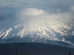 I had a fantastic flight from Portland to Boise over the volcanoes of the Northwest. Hood, St. Helens, Jefferson, they all stretched out before uson a beautifully clear day.