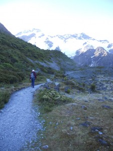 Per our usual routine, we checked in at the Department of Conservation info center to get a weather update and a suggested hike for the evening. The weather report was good. At least one day more of sun was expected, and we’d be able to get a great sunset view of Aoraki from Kea Point, a 30 minute hike from the campground.