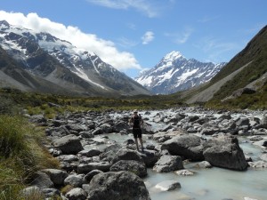 The second part of our plan for the day was to find excellent views of the mountain. This required a long hike out to the Hooker Glacier, on the other side of Mt. Cook.