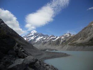 One of New Zealand’s great natural sites is Aoraki: Mt. Cook.  Seen by the Maori as the eldest brother in the capsized canoe that came from the mythical homeland, Hawaiki, the mountain is sacred, the tallest in New Zealand.