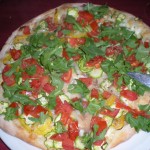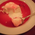 After voting, we headed to dinner with Deb’s family and some friends of theirs who are in town from England. I swear I’ve met more people who are primary English speakers than Italian. We had dinner at Caffe Capretz, a place that serves excellent pizzas. While I was voting with the ladies, Deb’s sister ordered me this amazing masterpiece. (Funny side story – like there’s a main story – when she told the owner that she wanted a vegetarian pizza he said, “okay, I’ll put some speck on it.â€Â This is something my grandfather would say.) Deb had the “smiley†calzone.  Dessert was panna cotta with amarena (winter cherries)