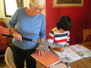 While I’m totally thrilled to be practicing vocab, Luigi isn’t super excited to be teaching me. When we left, his grandmother was standing guard to make sure he got his homework completely finished.