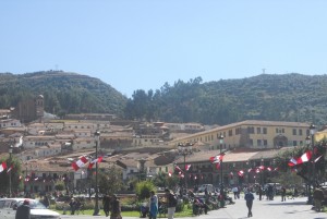 The plaza offered great views, bounded on two sides by enormous churches that had competed for the Vatican’s attention and the Pope’s declaration of “most beautiful.â€Â The cathedral (the Pope’s choice) was built on the base of an Inkan temple. The other was a Jesuit church.