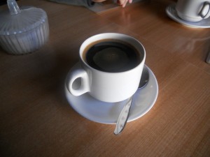 When we awoke, the day was moving into evening, which meant we could head to dinner. Yay. We pulled out the guidebook once again and I found the restaurant I’d identified earlier. The addicts in us were most excited about a good cup of coffee (because we needed more stimulation), and the “cultural center†atmosphere promised in the book sounded interesting as well.