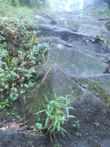 The trail led on, past sacred rocks and through parts that had been washed out by mudslides.