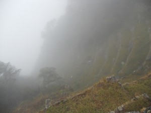 Once off the peak, we found ourselves in another world. Our surroundings changed from the high-steppe of the cloud forest to the damp, lush overgrowth of the rain forest, marked abruptly as the path dipped below the canopy before us.