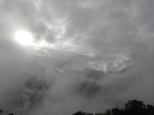 The enormous site of Machu Picchu lay hidden in the mist. It was right in front of us, and we had almost no indication that it existed.
