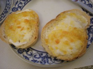 Coffee. We’d arrived late enough the day before that it was unseemly to have cappuccino. So, this was our first. It was lovely. I could have had 3 more. I didn’t. But, in an indulgent act, I did spread the cheese and peach jam all over my bread. Together.