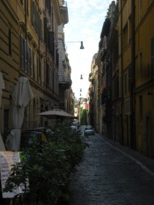 We woke early in Rome. We’d slept with the shutters open, for air in the hot roman night, and for light. The window was the only real source of either. The hotel was on a busy street, Via Nazionale, and located near the Victor Emanuel monument and the Coliseum. Good for sightseeing. Not so good for sleeping.  It was also on some kind of route for emergency vehicles. We went to sleep to the sound of sirens, and both woke about 5:30 to the sound of air brakes. I rolled out of the canopy bed and walked to the window, the wood floors creaking under me.