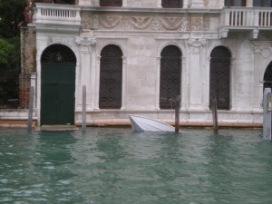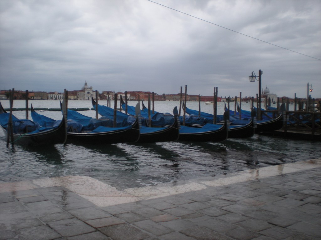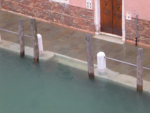 There was no breakfast this morning, and I was beginning to think it might take a little while to get to the station. I turned to the man behind the desk and asked if the trains would be running alright. He assured me they would, but warned that the boats might not, because the height of the water made it such that they could run aground – and into houses. Okay, well that ruled out a vaporetto ride. I’d be walking it. I sloshed back upstairs (waterproof shoes work both ways. Water can’t get out so much, and I’m pretty sure the “ventilation system†wasn’t designed for Venetian floods) to pack and get underway.