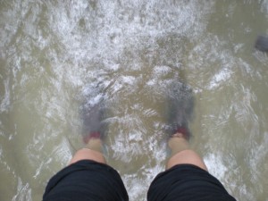 The water seemed to be getting deeper. People were walking seriously slowly now as the water was about an inch below the top of their boots. Men in hip waders were starting to appear.