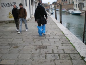 My recommendation is that, when visiting a new place, read what you can about it. If you have a guidebook, especially read the highlighted sections. The ones the author has gone to the trouble of putting in a box. They might have helpful information. For example: Rick Steves’ chapter on Venice has a section on “Floods.â€Â Most likely every guidebook has a section on Venetian floods. There’s a reason for that.