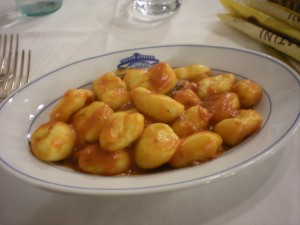 They were good. And they were big. I’m pretty sure that what I’ve had since I’ve been in Italy are gnochetti. Little gnocchi. These were the real deal, bigger than my thumb and with a substantial mush to them. The almost melted in my mouth.