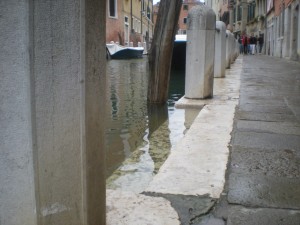 After about 20 or 30 minutes of walking in really cold water, I came across a little bridge to a point where I could actually see the ground. I think I thanked the saints a little. It didn’t last long though. A couple of blocks later I was back to mid-calf water. It seems that Dorsoduro is one of the lowest parts of the city.