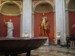 After miles of walking, we came to the part most of the people were looking for – the Sistine Chapel. There were handy little signs throughout the museums, directing us there. The entire time. From the first corridor of the museums. It was pretty comical, actually to see people choosing their route based on the signs, because they were placed at every turn, and pointed in almost every direction. There was no quick, direct route. That left foreign tour groups and field-trips jostling to get to a destination that was about an hour’s walk away.