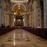 St. Peter’s, for all its opulence, is a really nice church, I think. It had a nice feel. A huge feel, but a nice one. Its size is pretty much huge. No, really huge. I found out later that one of the big churches I’d been walking past, near my hotel, is the exact shape and size of one of the supporting columns inside St. Peter’s.