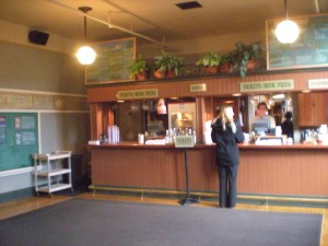 Last night I had a free night in between gigs, so I decided to get a room at one of Portland’s landmarks, the Kennedy School. Part of the venerable McMenamins family, the Kennedy School is housed in a 1915 schoolhouse that was once part of the Portland school system. In addition to 23 classroom/guest rooms, the property includes a soaking pool, 5 bars, a huge, interesting restaurant and a theater pub.