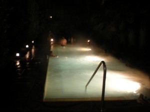 I sat and listened to a few other people who were chatting and snacking. And I wrote about meeting a new friend in the soaking pool. When I’d mopped up the last bit of ice cream I packed up and walked the 50 yards back to my room – where I passed out in a brownie-induced stupor.
