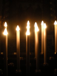 I walked up to one of the side chapels to light a candle for my families – American and Italian.   These were the electric variety, so I plunked in my coin, picked one out and plugged it in. And I chuckled.