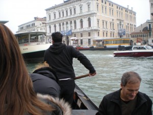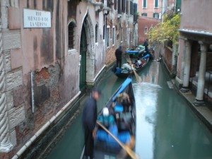 I was tired. It had already been a long day, and I was ready for a nap before dinner. I got my bearings and started the trek back to the hotel. It was a beautiful evening, dry and relatively warm. A few blocks off of St. Mark’s as I stopped to take a picture of passing gondolas, I remembered my plan from earlier in the day.