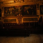 As shops started to shut down, I rearranged my plan for the day, and headed over to Saint Mark’s to see what I could accomplish before dark. I knew that I could buy a “museum pass†at the Doge’s palace that would let me into a bunch of museums, so I headed there first. Once inside, I decided to run through the palace. I could always come back later with my pass. I hit the opera museum with its huge columns, the palazzo courtyard, and the bathroom. Then I entered the palace itself. It was big and interesting, housing the senate chambers, different courts, residences, and the armory.