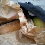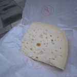 I put on the raincoat I had been carrying in my bag to make more room, and transferred the slab of cheese to my coat pocket. That done, I had easy access to both my bread and cheese, which I cut with my handy-dandy pocketknife.