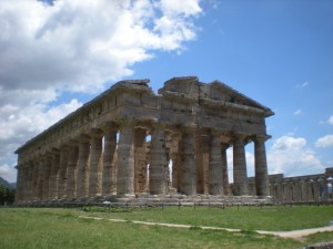 Now, I’m basically tagging along on this portion of the trip, so I’ve done embarrassingly little research into the area. I’d never even heard of Paestum. So I picked up my handy-dandy tourist guide and learned a couple of fun facts about Paestum. First, Paestum has the largest collection of Greek temples outside of Greece. Coolness. My family is Greek and Italian. We’re other things, too, but we mostly claim the Greek and Italian. This sounded like our kind of place.
