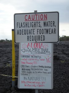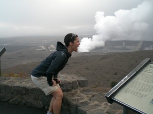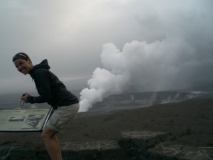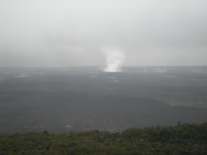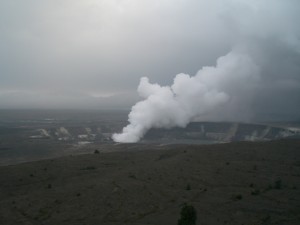 and headed quickly back to the gate, where an “official vehicle†was pulling up. Crap. We all darted through the gate while the official worker was distracted by the photo guy, and climbed into our vehicles. Our next stop was the Kilauea caldera – home of madam Pele – about 40 minutes away.