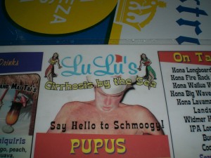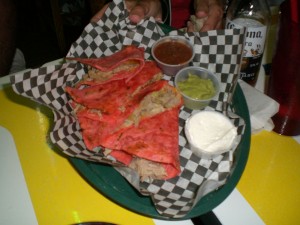 The menu includes fantastic items like “the hogzilla†pork sandwich, “nachos the size of your head,†and “the bearded lady†burger. This night, we ended up with aloha and Magnum P.I. burgers, fish tacos, fish and chips, and a quesadilla that could barely contain itself.