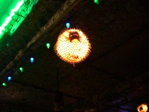 Lu Lu’s is a tasty standby. The big, open-air restaurant features huge tiki heads, puffer-fish lighting, and dollar bills vandalized and stapled to the walls.