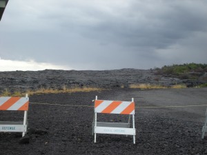 We’d heard that Kilauea had been putting on a show over the last month or so, and that some of the roads were now closed. We were pretty surprised, though, when we learned at the visitor center that our usual overlook was basically destroyed by the sulfurous steam the volcano was emitting, and the road to the overlook was covered in rock. In search of a good viewing area, we walked toward the “Volcano House,†a restaurant and inn on the edge of the volcano’s ledge. And we found it closed. “Son of a bitch†was muttered a couple of times, and arms tossed into the air.