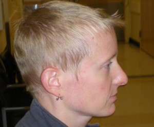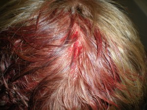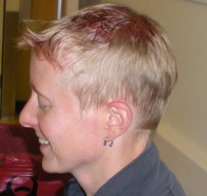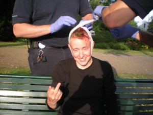 Leigh’s head after it stopped bleeding. That’s my hand-print…