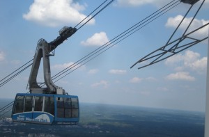 With the gondola shuttling people from the ground to the top of the stone. For what, I’m not sure. I’ve ridden the tram in Portland just to say I rode it, and to see the views on the way to Oregon Health Sciences University. Maybe it’s kind of like that. I’m not sure. Or like riding a ski-lift to the top, in order to see the view. And I have to say that the views from the top were spectacular. It was as though I was looking down on the city from a meteor. It’s possible that I was.