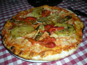 Fabio knew I was vegetarian and went out of his way to find a place that would accommodate me. “I would have taken you to another place, but they would probably be unfriendly to a vegetarian.â€Â I pictured myself being slapped by a steak. “Roman food is very…earthy,†he said, bringing his hand down through the air in front of him. I reassured him that I can almost always find a pasta or pizza to make due with. And this place we had come was a pizzeria. More pizza!