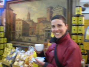 We ordered a couple of coffees, and waited at the bar while Fabio explained that many Italians order a glass of water with their coffee in order to cleanse their palate. I’d noticed the water but didn’t realize its purpose. The coffee arrived and Fabio insisted on another picture.