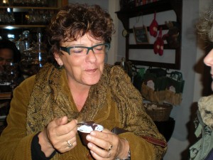 While we talked, food began to appear. The owner announced that, per Luccia’s request (she’s the artist and is a fervent vegetarian), the entire meal would be vegetarian. Wow. Deb and Sandra looked at me with wide eyes. How fantastic! I’d be able to eat everything without asking if it had meat. Amazing.